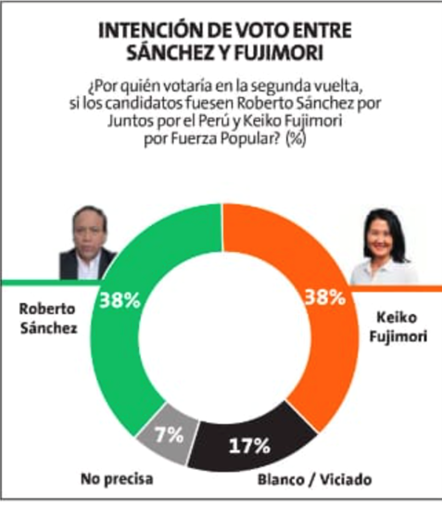 Si bien la candidata presidencial está mejor posicionada para ganar la presidencia durante su cuarta contienda electoral, al haberla ganado con holgura en primera vuelta, el antivoto a Keiko Fujimori es alto. En la contienda electoral los votos blancos y nulos ( 3.1 millones) fueron los ganadores de la elección. Los dos candidatos que disputarán las elecciones no suman juntos ni el 25% de los votos emitidos, sin contar que hubo un 23,8% de ausentismo. De los 35 partidos políticos que participaron en la contienda electoral, solo seis han logrado representación en el Congreso. En el Perú solo 19% de la población está satisfecha con la democracia, el índice más bajo de la región, después de Haití. Los resultados de la primera vuelta electoral denotan una enorme falta de representatividad de la sociedad peruana.